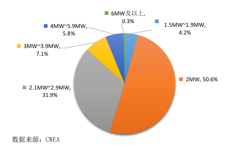 2018 年中國不同功率風電機組新增裝機容量比例