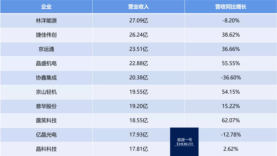 今年上半年中國光伏上市公司A股的財報已經出爐,總計2900多億營收、300余億凈利。其中,營收最高的前十大公司分別是隆基股份、通威股份、特變電工、天合光能、中環股份、正泰電器、晶澳科技、東方日升和陽光電源、三峽能源。營收同比增幅較高的有中環股份、愛旭股份、隆基股份、天合光能、福萊特、上機數控、錦浪科技、海優新材、固德威、奧特維、明冠新材等。