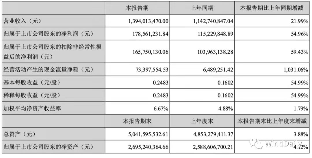 上半年,泰勝風能13.94億元,同比增長21.99%;實現凈利潤1.79億元,同比增長54.96%。