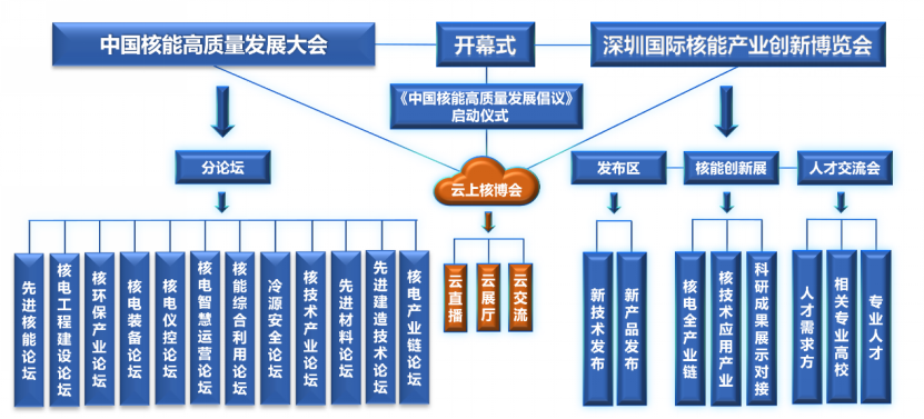 本屆深圳核博會期間舉辦的13場論壇有:(一)先進核能論壇、(二)核電裝備論壇、(三)核電產業鏈論壇、(四)核環保產業論壇、(五)核電儀控論壇、(六)核電工程建設論壇、(七)核電智慧運營論壇、(八)先進核材料論壇、(九)核能綜合利用論壇、(十)核電先進建造技術論壇、(十一)核電廠冷源安全論壇、(十二)核技術產業論壇。
