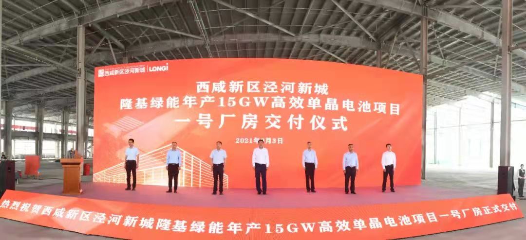 9月3日,西咸新區(qū)涇河新城舉辦隆基綠能年產(chǎn)15GW高效單晶電池項(xiàng)目一號(hào)廠房交付儀式。西咸新區(qū)黨工委委員,涇河新城黨委書記、管委會(huì)主任張宏偉出席儀式并宣布廠房交付。涇河新城黨委委員、管委會(huì)副主任劉高波主持交付儀式,涇河集團(tuán)黨委書記、董事長張鵬飛參加。