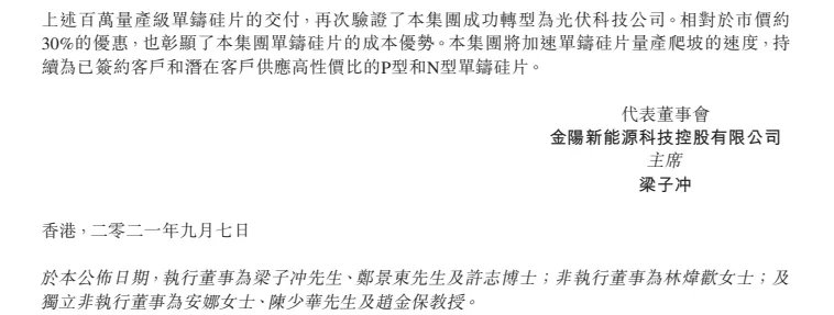 9月7日,金陽新能源科技控股有限公司(以下簡稱“金陽新能源”)公布業(yè)務(wù)發(fā)展最新情況!