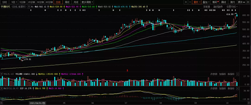 昨日(10月19日),寧德時代股價首次突破600元,創(chuàng)歷史新高,總市值一度超1.4萬億元。