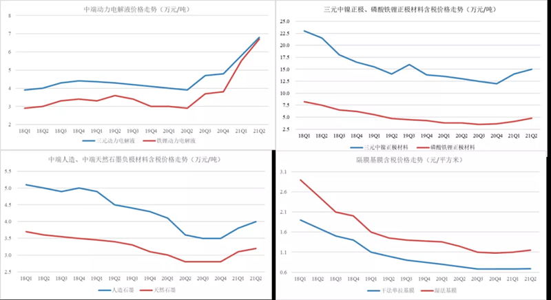 據(jù)高工鋰電統(tǒng)計,2020 下半年以來,電解液漲速最快,正負極材料價格也有所提升。