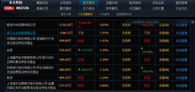 除了夫妻二人身價(jià)暴增,永太科技還是一個(gè)機(jī)構(gòu)重倉(cāng)股,三季報(bào)顯示:信誠(chéng)新興產(chǎn)業(yè)基金、新興成長(zhǎng)五期私募基金、金鷹合改革紅利靈活配置混合基金等為晉升為前十大流通股東,增持?jǐn)?shù)在500萬(wàn)至900萬(wàn)股不等,三季度以來(lái),永太科技漲幅又達(dá)到25%。