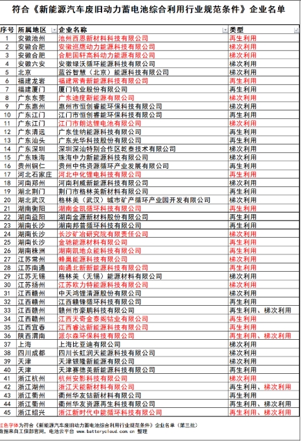 2018年9月5日、2020年12月16日、2021年12月16日,工信部先后發(fā)布了《新能源汽車廢舊動力蓄電池綜合利用行業(yè)規(guī)范條件》企業(yè)名單公告,第一批、第二批、第三批“正規(guī)軍”相繼誕生。