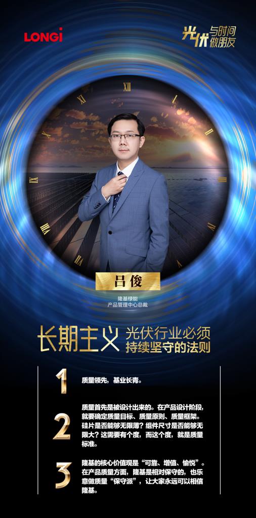 中國光伏行業從披荊斬棘到全球領先,唯有質量領先,基業才能長青。“長期主義就是每一個瞬間的持續積累,如此而已。做好每個、今天的品質,持續產生的力量,會讓光伏從平凡走向為非凡。” 呂芳表示。