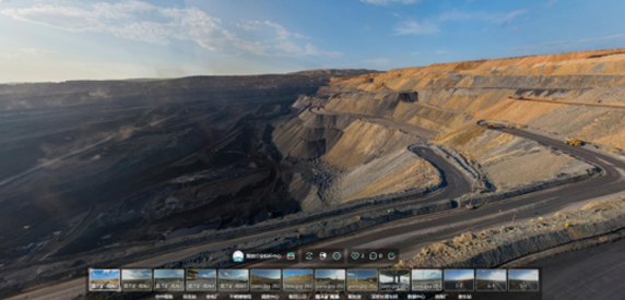 進入全景體驗,映入眼簾的是整齊排布的樓宇、廠區,礦區地形地貌、走向及整體布局一覽無遺。林立的廠房、高聳的儲煤倉、蜿蜒的運煤專線彰顯著井工煤礦的風采。藍天輝映下,一輛輛行駛卡車,一臺臺作業電鏟,露天礦開采規模與開采狀況盡顯眼前,巨大礦坑帶來的震撼直抵人心。