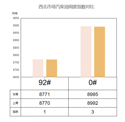 西北主營(yíng)汽跌柴穩(wěn)。周內(nèi)西北地區(qū)各主營(yíng)銷售公司銷售政策無明顯調(diào)整,市場(chǎng)需求清淡,出貨一般,汽油多持穩(wěn)定,個(gè)別單位價(jià)格下跌。柴油資源依舊偏緊,因已至批發(fā)限價(jià),柴油價(jià)格維持穩(wěn)定。