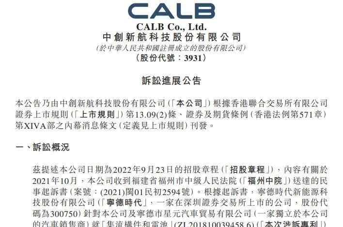 11月30日,中創(chuàng)新航科技股份有限公司(以下簡(jiǎn)稱“中創(chuàng)新航”,3931.HK)發(fā)布公告,其表示于2022年11月29日收到福州中院作出的《民事判決書》。公告指出,福州中院一審判決中創(chuàng)新航停止生產(chǎn)、銷售侵權(quán)產(chǎn)品,并賠償寧德時(shí)代(SZ300750)經(jīng)濟(jì)損失及合理費(fèi)用共計(jì)263.25萬元。中創(chuàng)新航在公告中回應(yīng)稱,動(dòng)力電池領(lǐng)域的技術(shù)進(jìn)步和產(chǎn)品迭代速度快,該公司產(chǎn)品已采用更先進(jìn)的技術(shù),與涉訴專利的早期技術(shù)完全不同,已不存在本公告判決中提及的需要立即停止銷售涉訴產(chǎn)品的情形。該公告判決為福州中院的一審判決,并非最終審判生效判決。中創(chuàng)新航將在上訴期內(nèi)就該一番判決向最高法院提出上訴,尚無法確認(rèn)最終判決時(shí)間和結(jié)果。同時(shí),涉訴專利中部分維持有效的權(quán)利要求,也尚處于北知院(北京知識(shí)產(chǎn)權(quán)法院)的審理中。因此,中創(chuàng)新航目前無需支付福州中院的一審判賠額。據(jù)了解,相較寧德時(shí)代在本案中主張索賠的1200萬經(jīng)濟(jì)損失,福州中院一審判決僅支持索賠額的約20%,