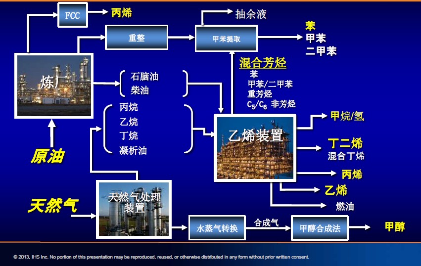 美國陶氏化學公司在2012年決定斥資40億美元在德克薩斯州建設世界規模最大的乙烯工廠,日本出光興產公司等也決定在其周圍建廠,美國埃克森美孚公司等也決定新建乙烯工廠,這些都是頁巖氣帶來乙烯產業又一輪繁榮的典型事例。