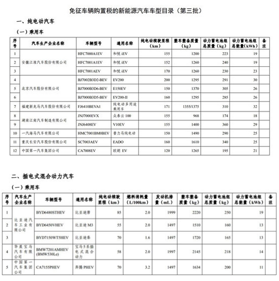 第三批目錄仍包含了純電動汽車和插電式混合動力汽車兩種類型產品,其中純電動車包括了剛剛上市的北汽EV200,還有擁有不同續航能力的江淮和悅iEV等多款車型。而在插電式混合動力車型中,即將上市的華晨寶馬530Le是唯一一款合資品牌的產品,此外像比亞迪秦、比亞迪唐也都出現在第三批目錄當中。