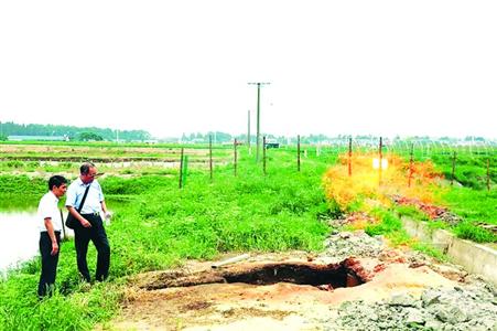 經(jīng)專家初步檢測,不明氣體為淺層天然氣(俗稱沼氣),遇明火可燃。由于無毒無害,對周圍居民沒有威脅,將采取自燃燒盡方式。目前,燃燒點50米外已設(shè)防護(hù)欄圍擋,并設(shè)置禁止通行標(biāo)志,請附近居民勿隨意靠近。