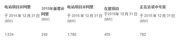 集團主要在中國發展及營運多間太陽能發電站。截至2015年12月31日止年度,太陽能發電按年增加67.2%至1,016,312兆瓦時。增長主要是由于已并網并投入運營的太陽能發電項目的數量增加。截至2015年12月31日,集團的太陽能發電站已成功達到年設計裝機容量1,780兆瓦。