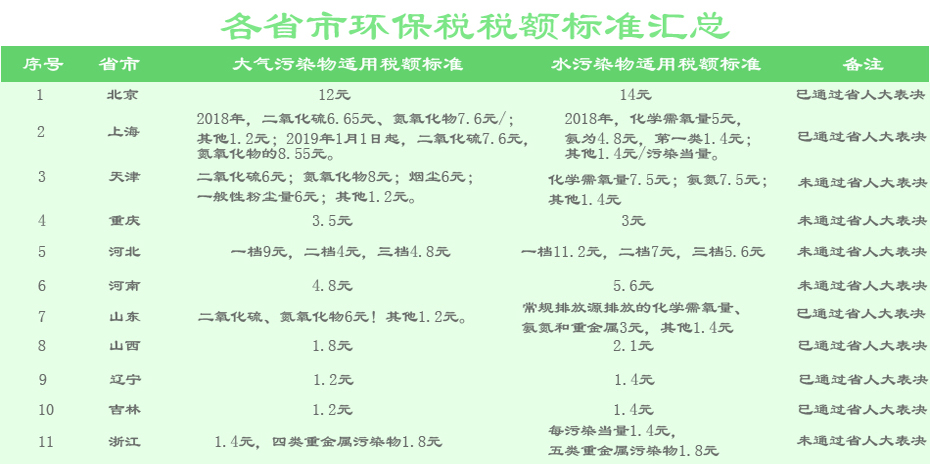 地方環(huán)保稅稅額標(biāo)準(zhǔn)陸續(xù)公布