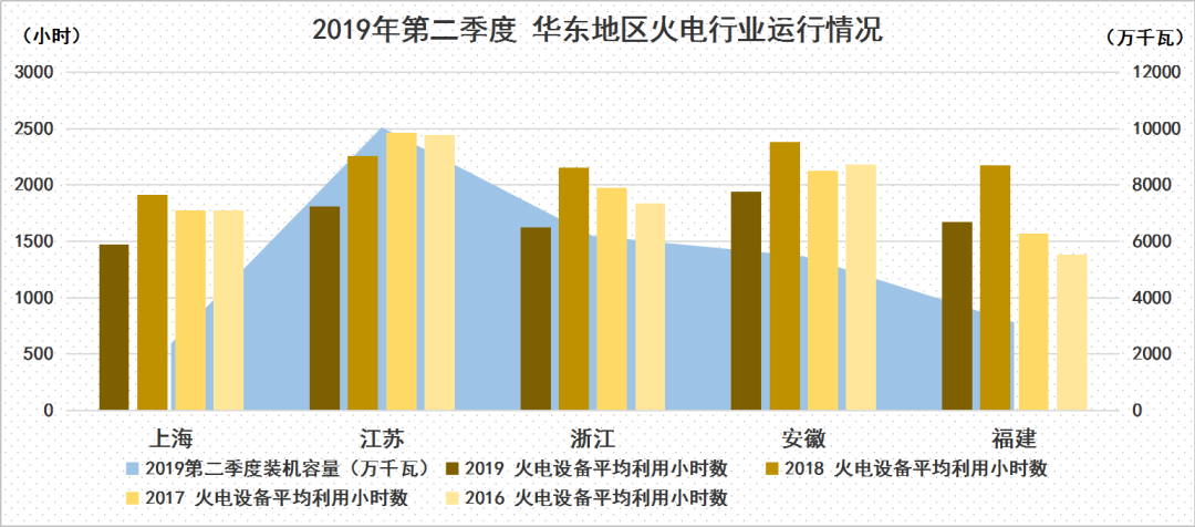 中電傳媒電力傳媒數據研發中心分析顯示,華東地區去產能成效較為顯著,2019年第一季度,江蘇省能源監管辦再次注銷26家企業落后煤電機組44臺機組,二季度江蘇省發改委、省生態環境廳聯合發布了《關于完善根據環保信用評價結果實行差別化價格政策的通知》,對環保信用評價結果較差的企業的用電價格進行加價,實行差別化電價的政策倒逼企業進行超低排放改造和火電深度治理。江蘇省多地市紛紛發布打贏藍天保衛戰實施方案,提出2019年底關停整合落后燃煤小熱電,預計未來江蘇煤電機組關停步伐或將進一步提速。根據江蘇能監辦公布數據顯示,全省全社會用電量同比下降0.03%,再加上清潔能源消納比重提升,因此上半年火電設備平均利用小時數下滑明顯。隨著迎峰度夏的來臨,華東部分地區用電負荷將會出現大幅度提升,火電設備平均利用小時數將出現反彈。